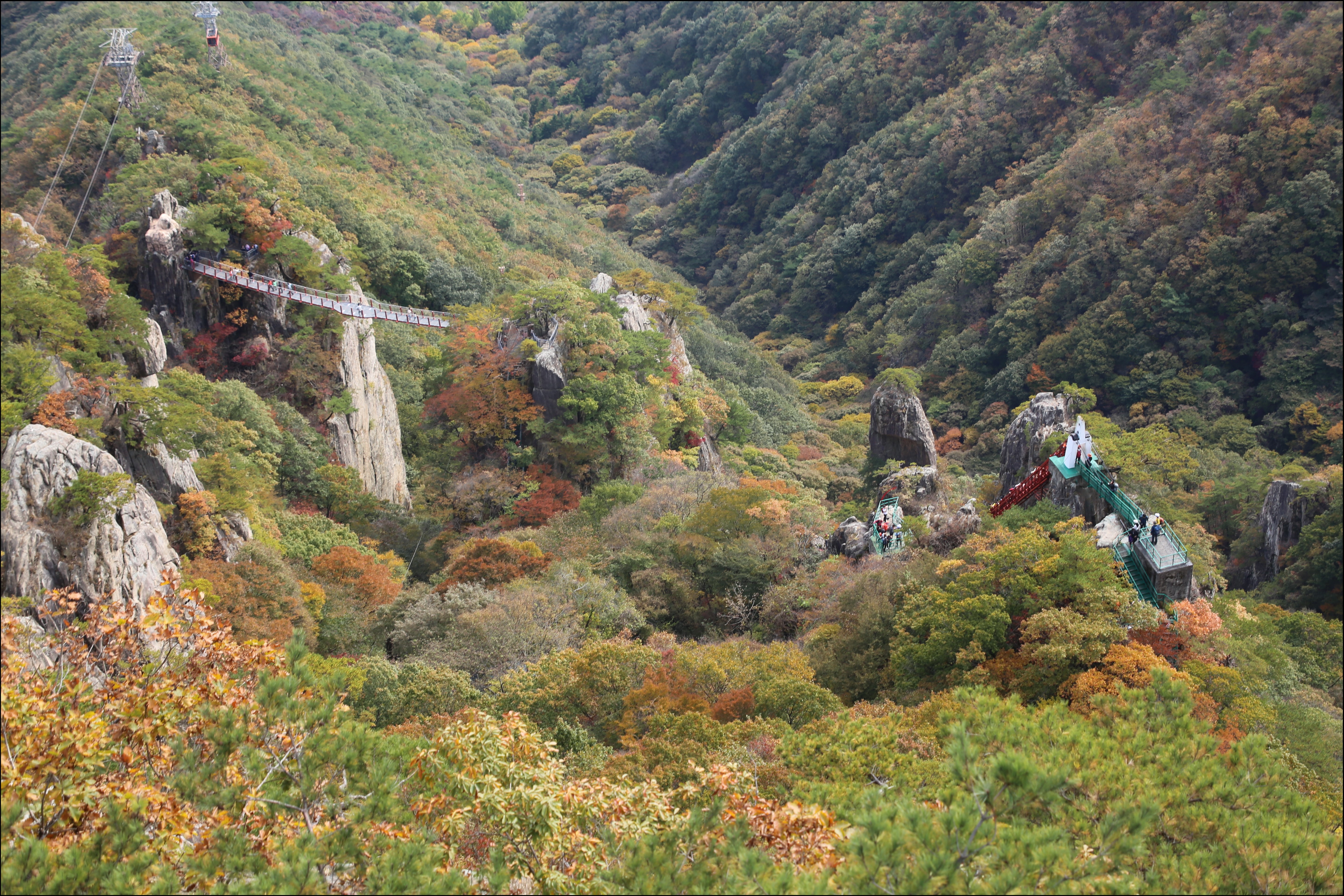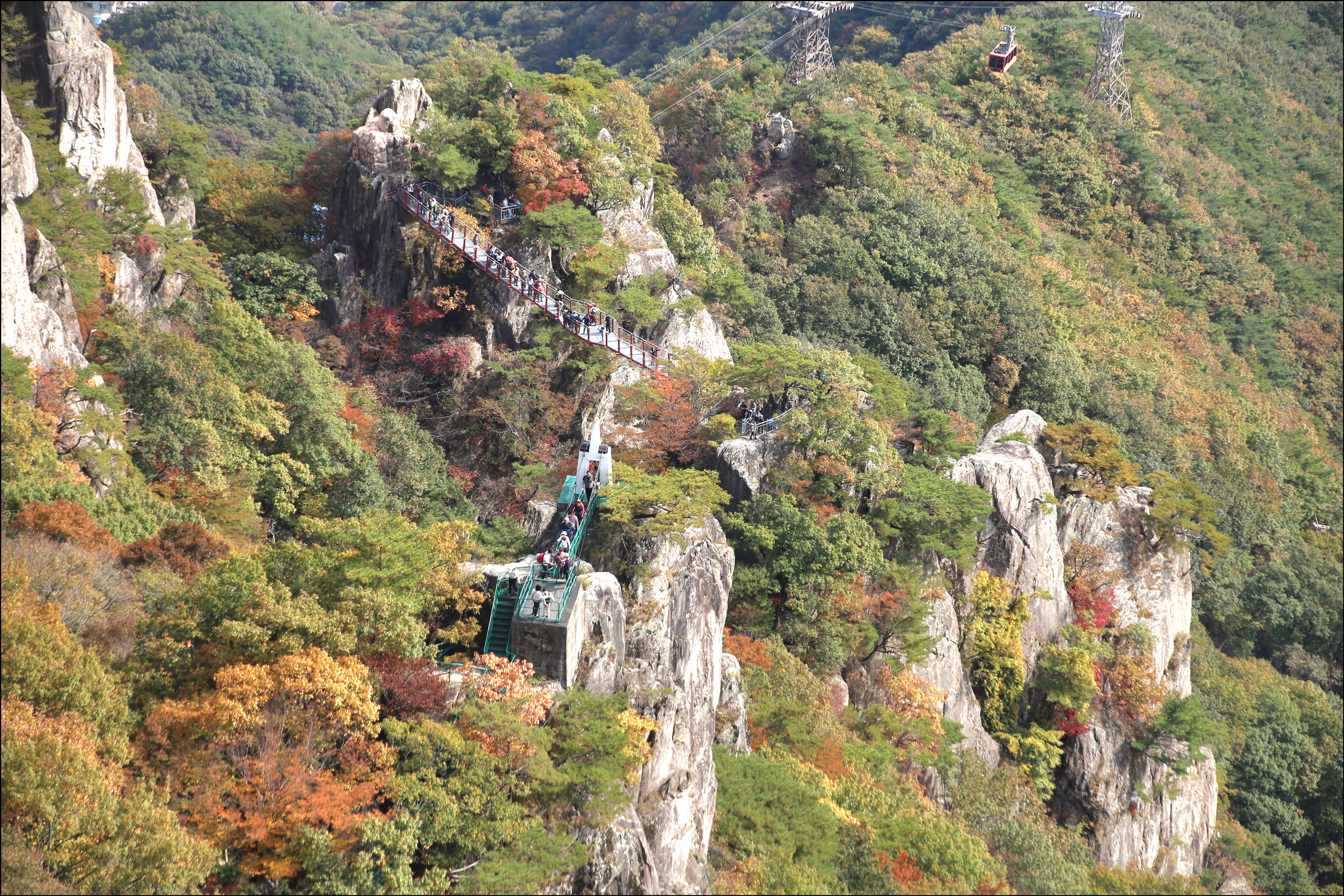 ▼마천대에서 바라본 금강구름다리와 삼선철계단..