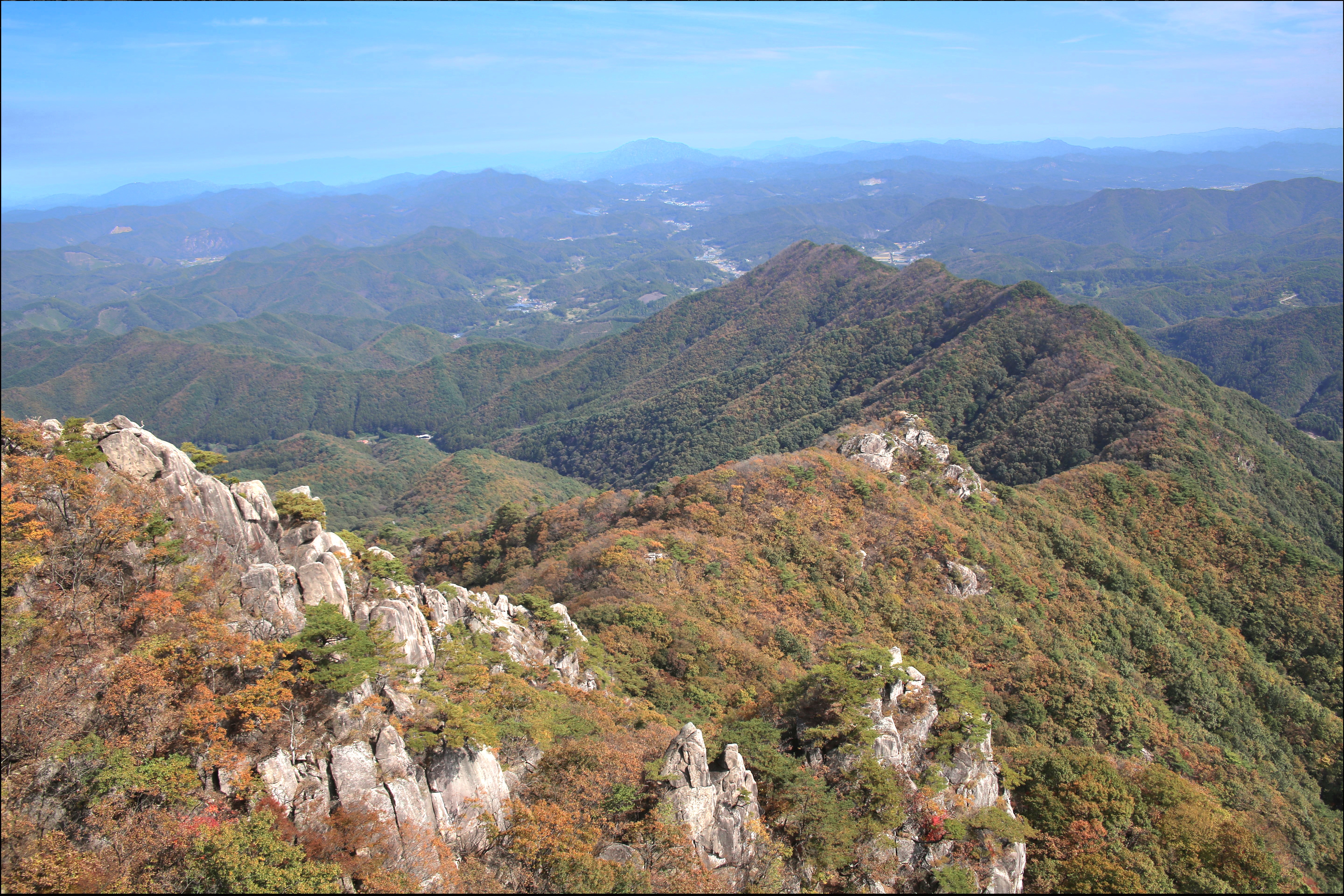 ▼마천대에서 바라본 지나온 주능선 암릉..