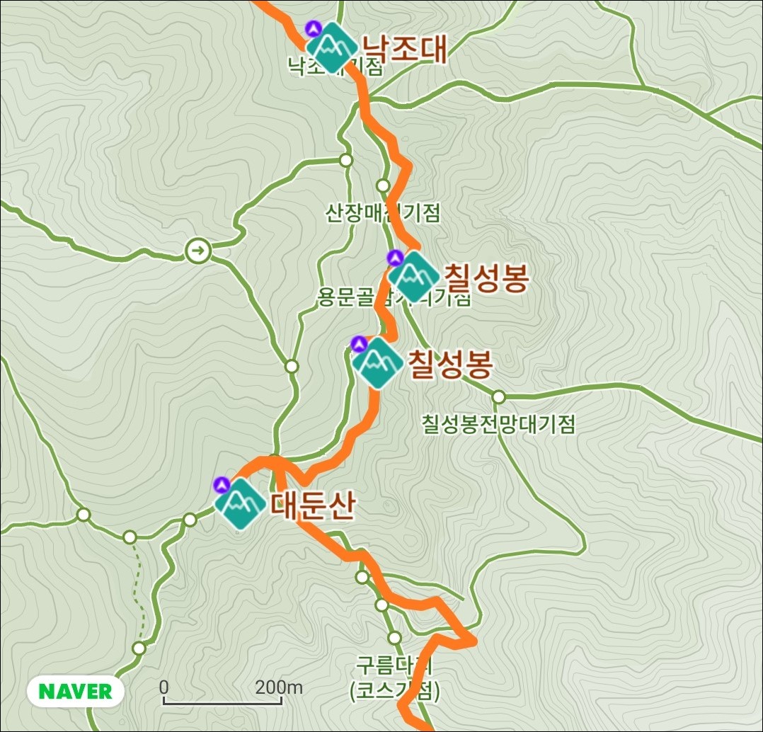 ■ 수락계곡 주차장》선녀폭포》수락폭포》석천암》낙조대》칠성봉 1》용문골 삼거리》칠성봉 2》왕관바위》금강구름다리 분기점》