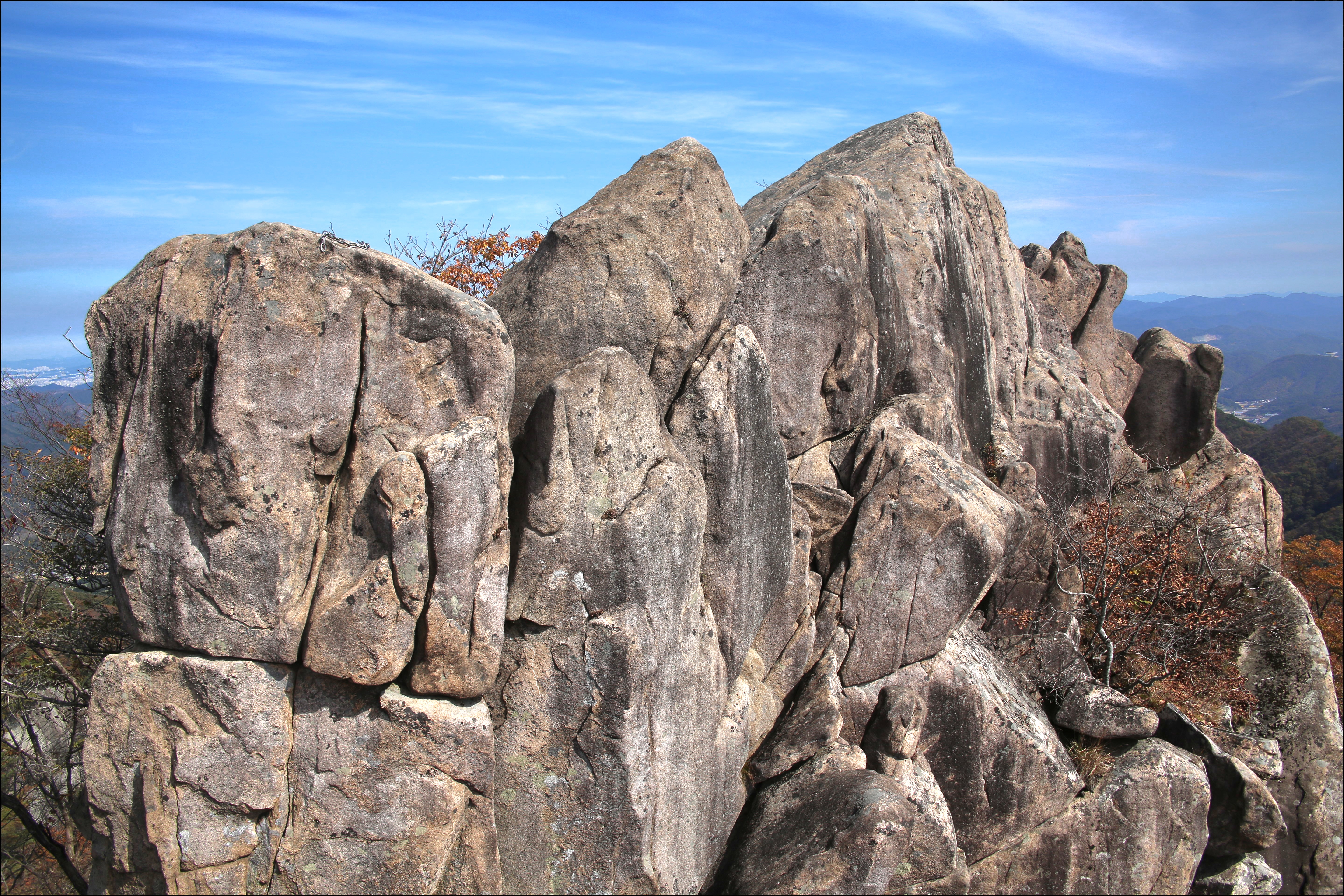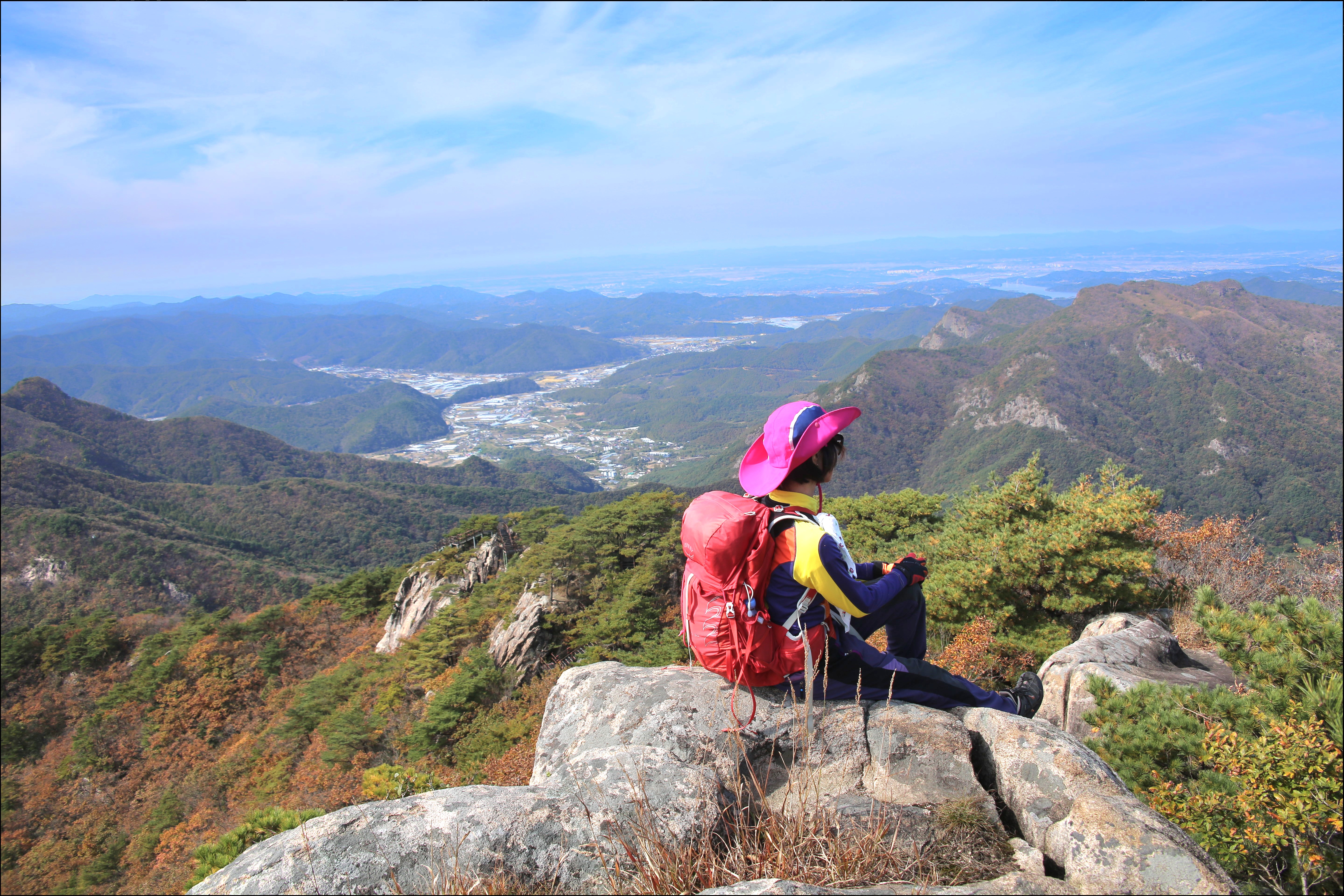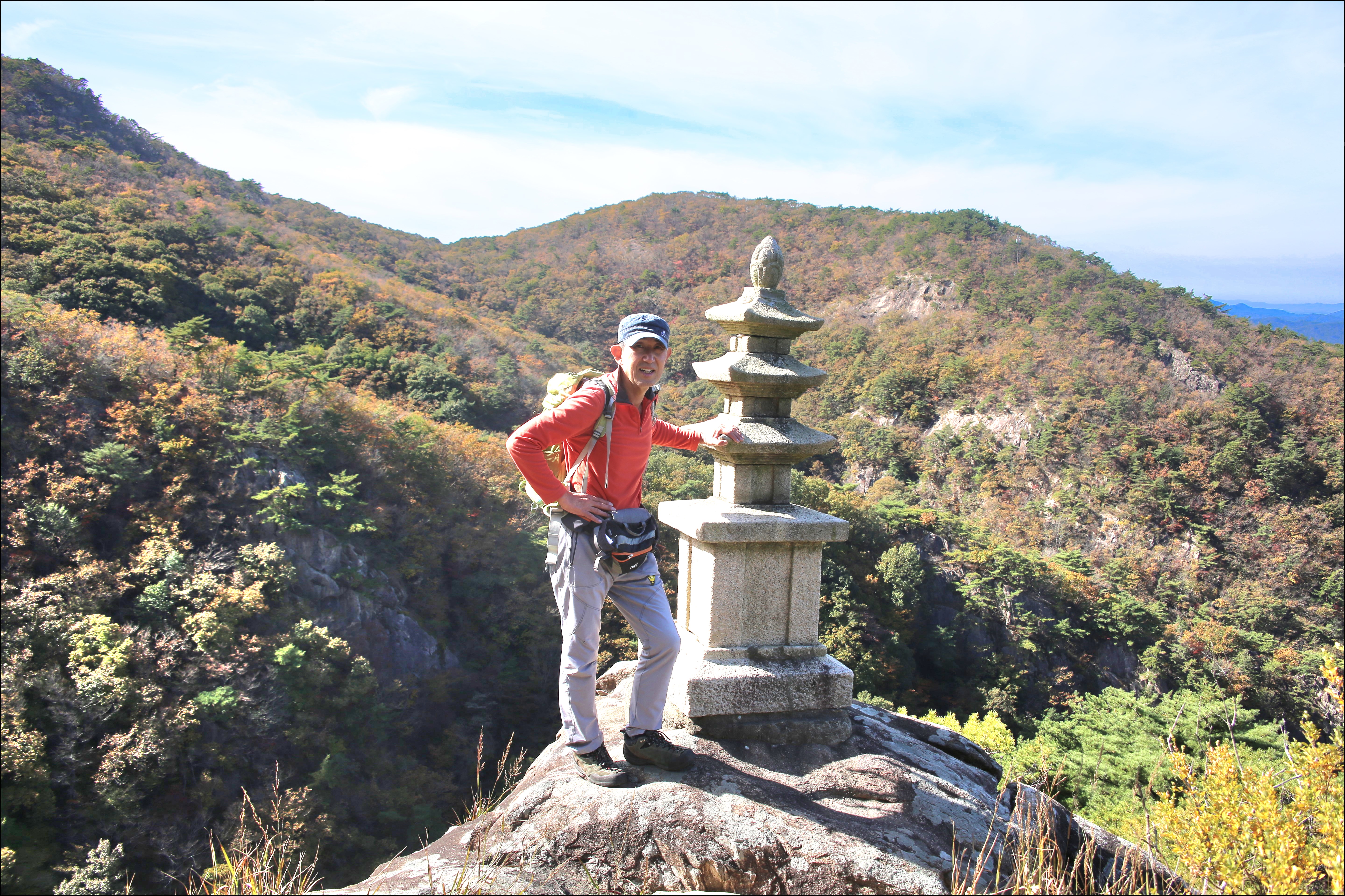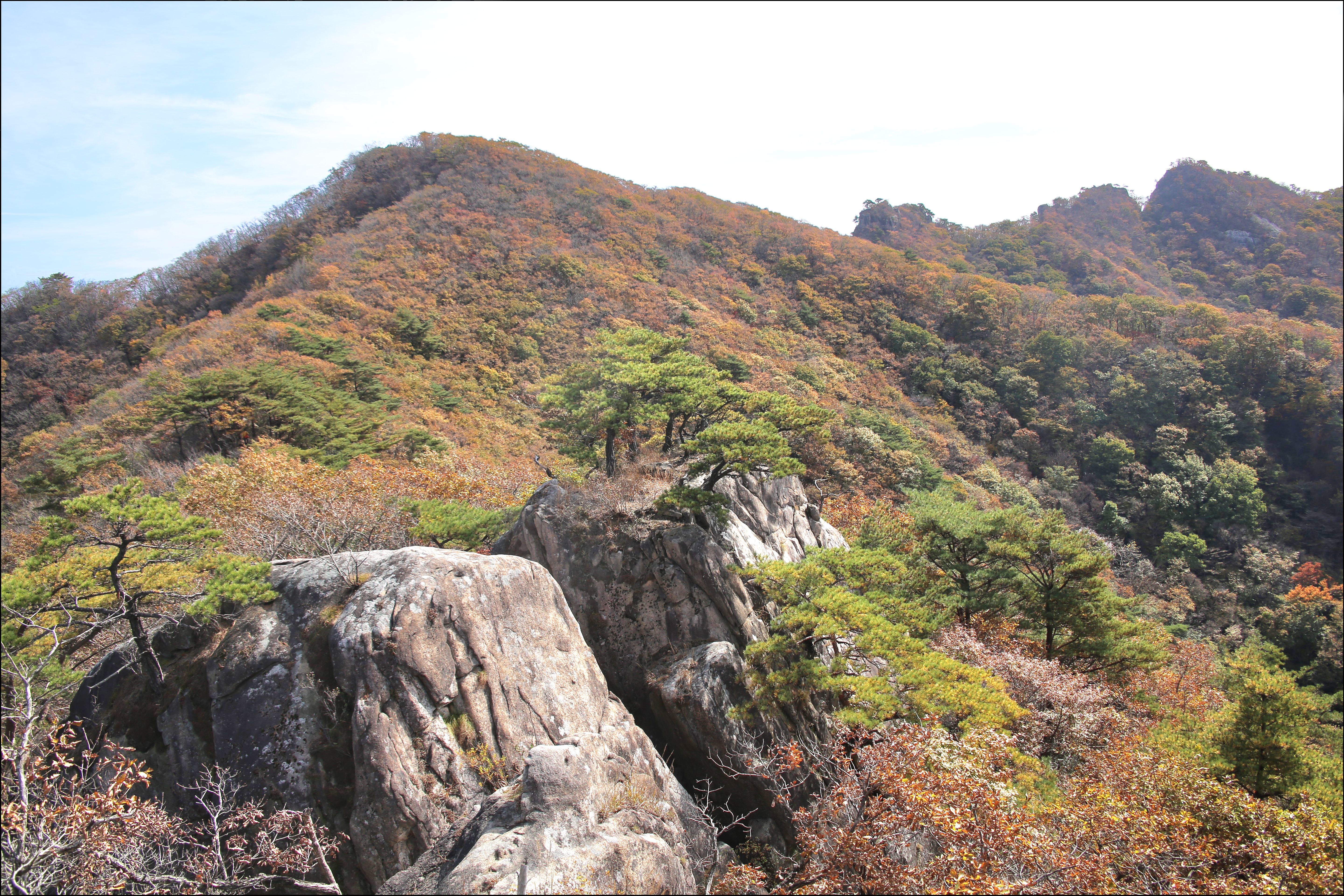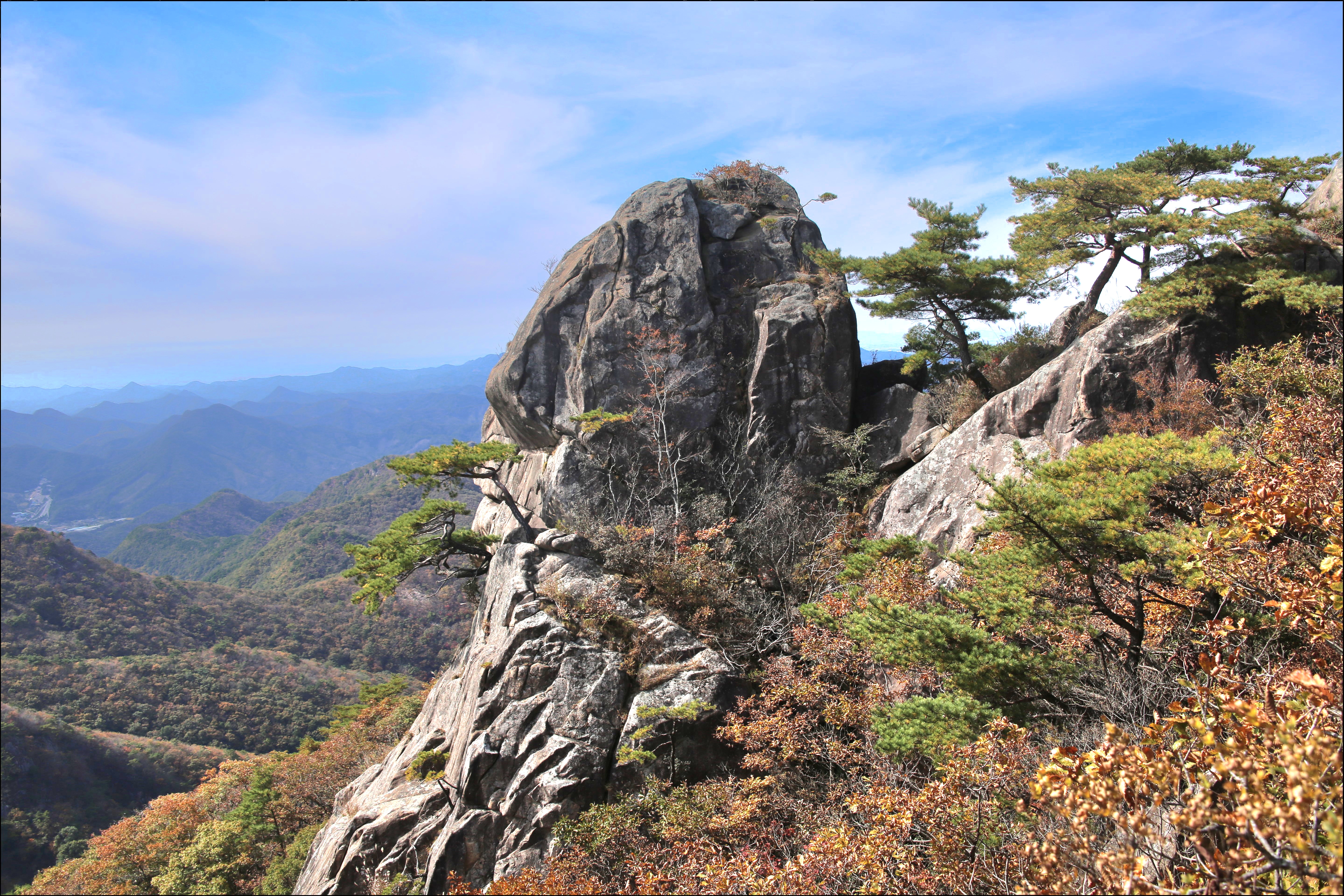 슬그머니 들어가 주변 풍경을 살피니 7경으로 선정될만큼 좋은 조망처에 위치하였지만 탐방객이 머무를만한 공간이 없을 정도로 협소하였기에 출입금지한 듯 싶었다. 미답지인 석천암 코스는 낙조대에 이르는 암릉구간에서 대둔산과 월성산 조망을 즐길 수 있었고, 조망코스로 부족함이 없었다. 낙조대 능선 초입 암릉으로 올라 칠성봉과 왕관바위로 이어지는 암릉으로 진행하였다.