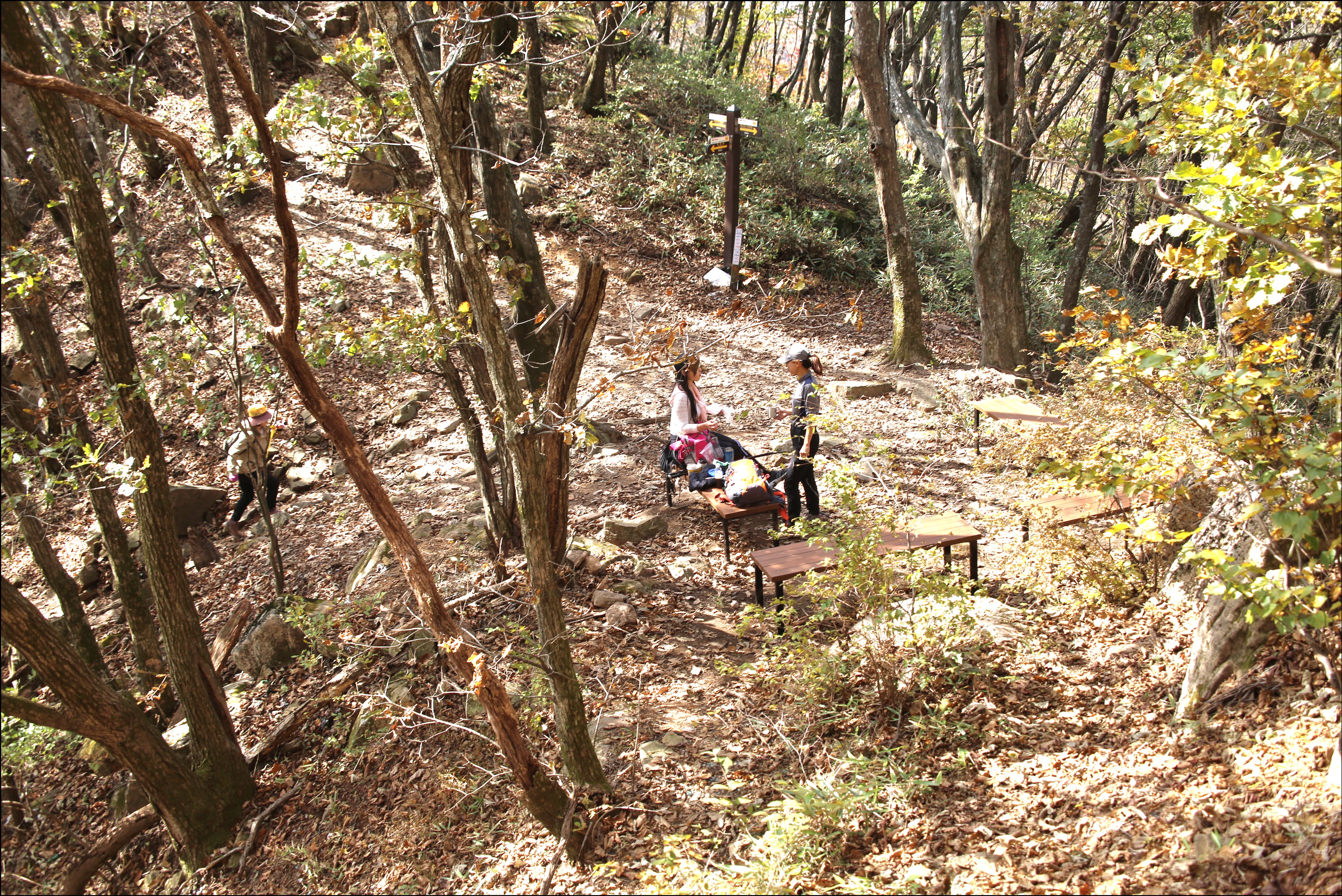 ▼미답지인 석천암코스를 탐방하기 위해 수락폭포를 왕복한 후 이곳 석천암 분기점에서 석천암으로..