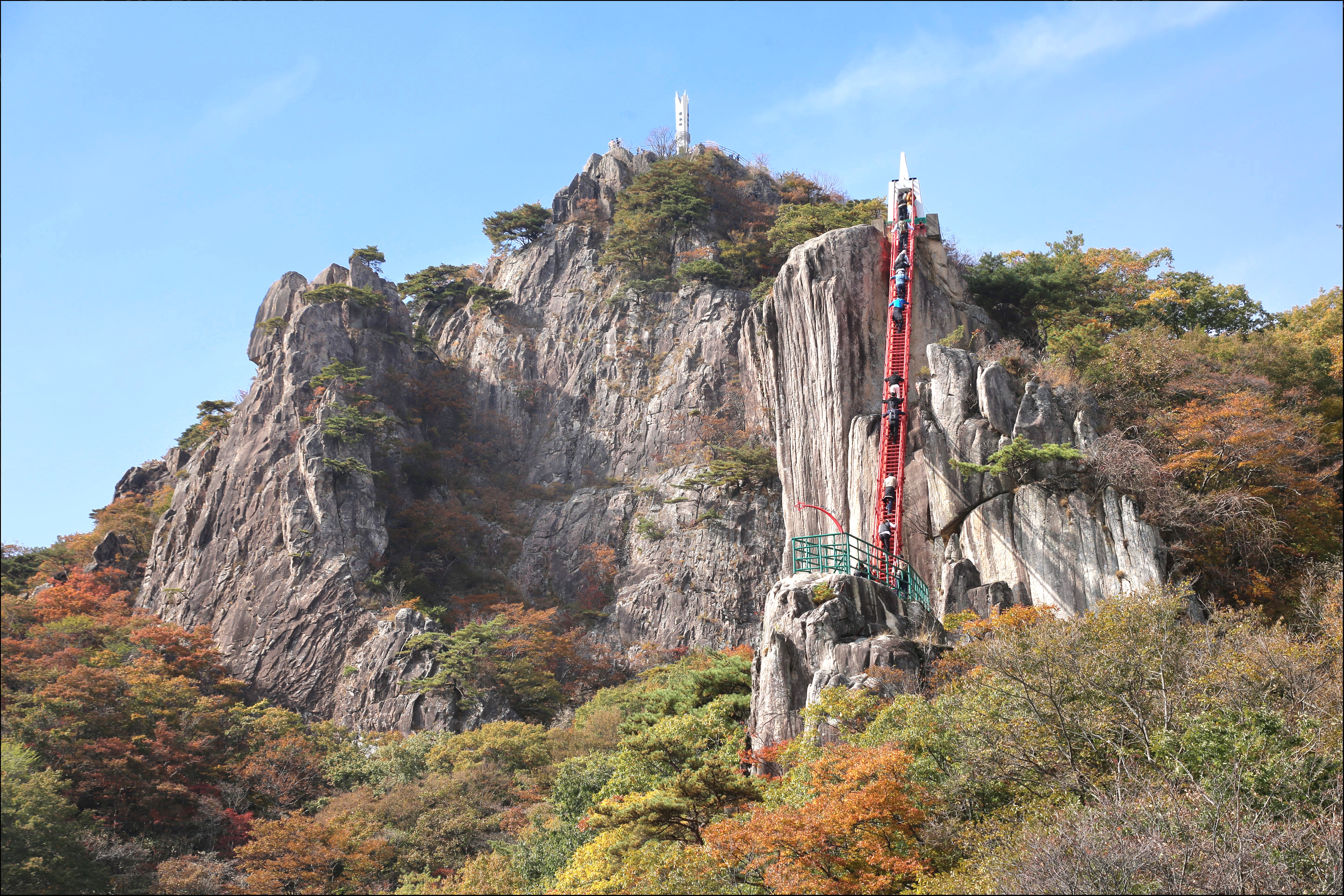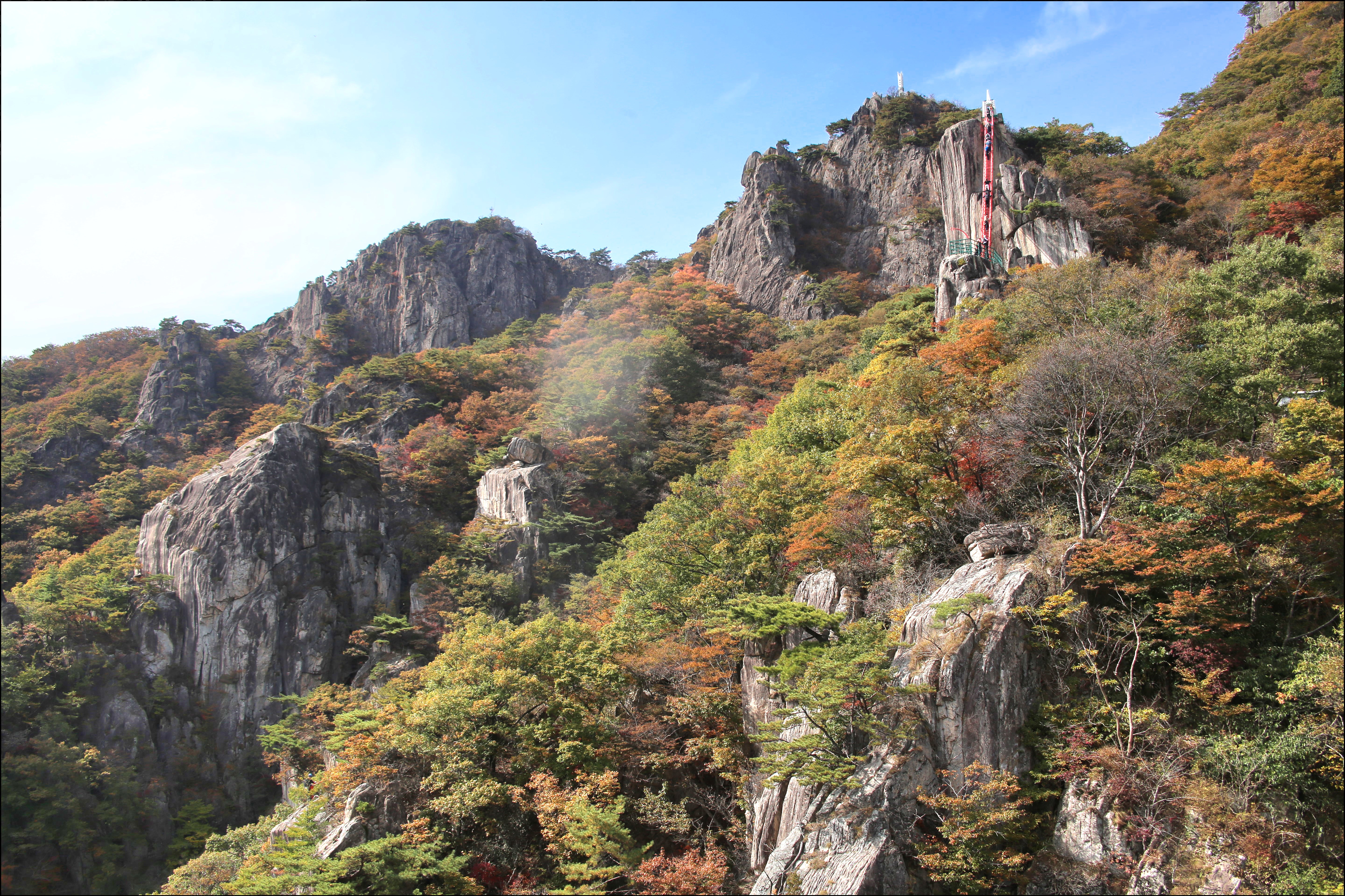 ▼금강구름다리에서 바라본 마천대와 삼선철계단