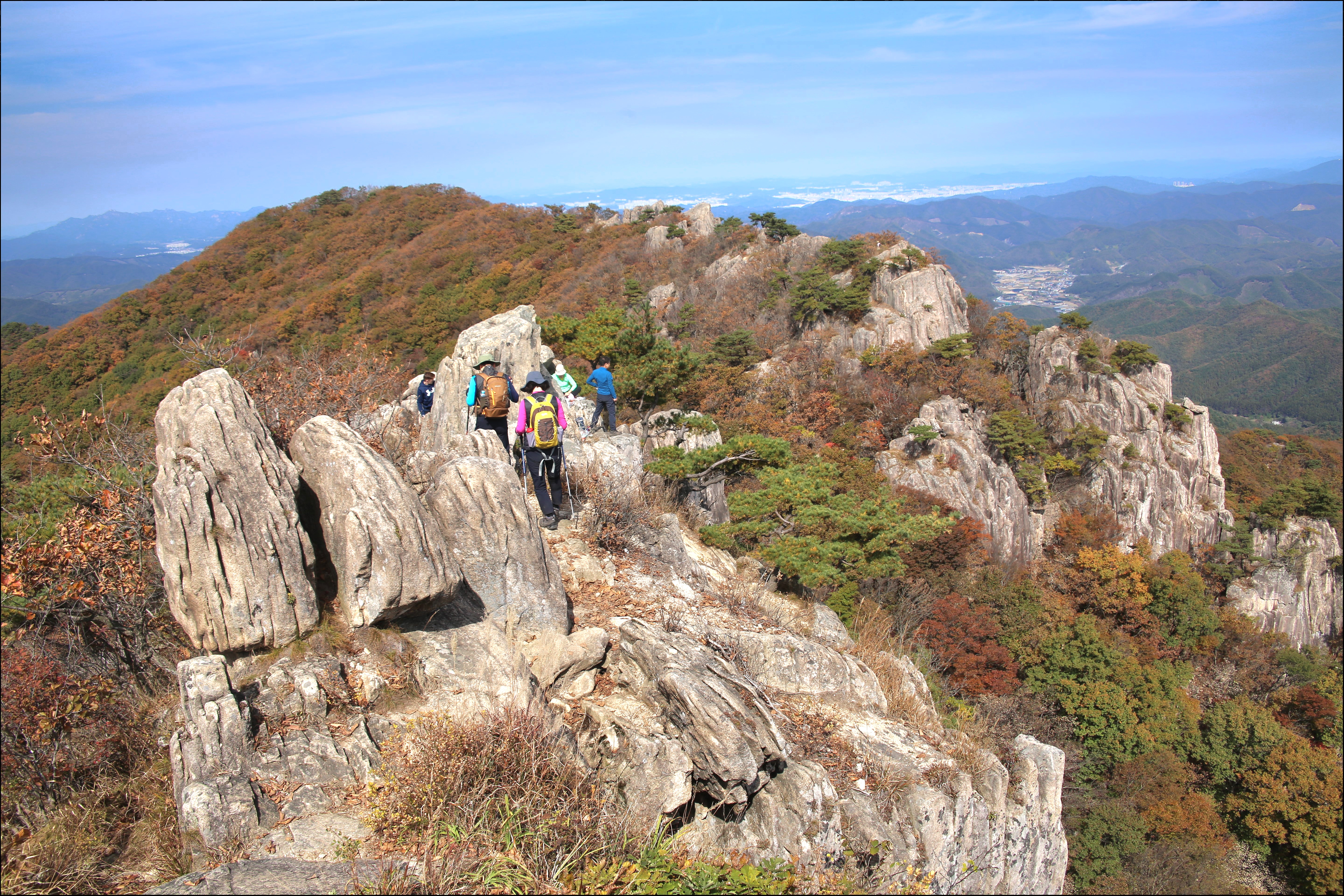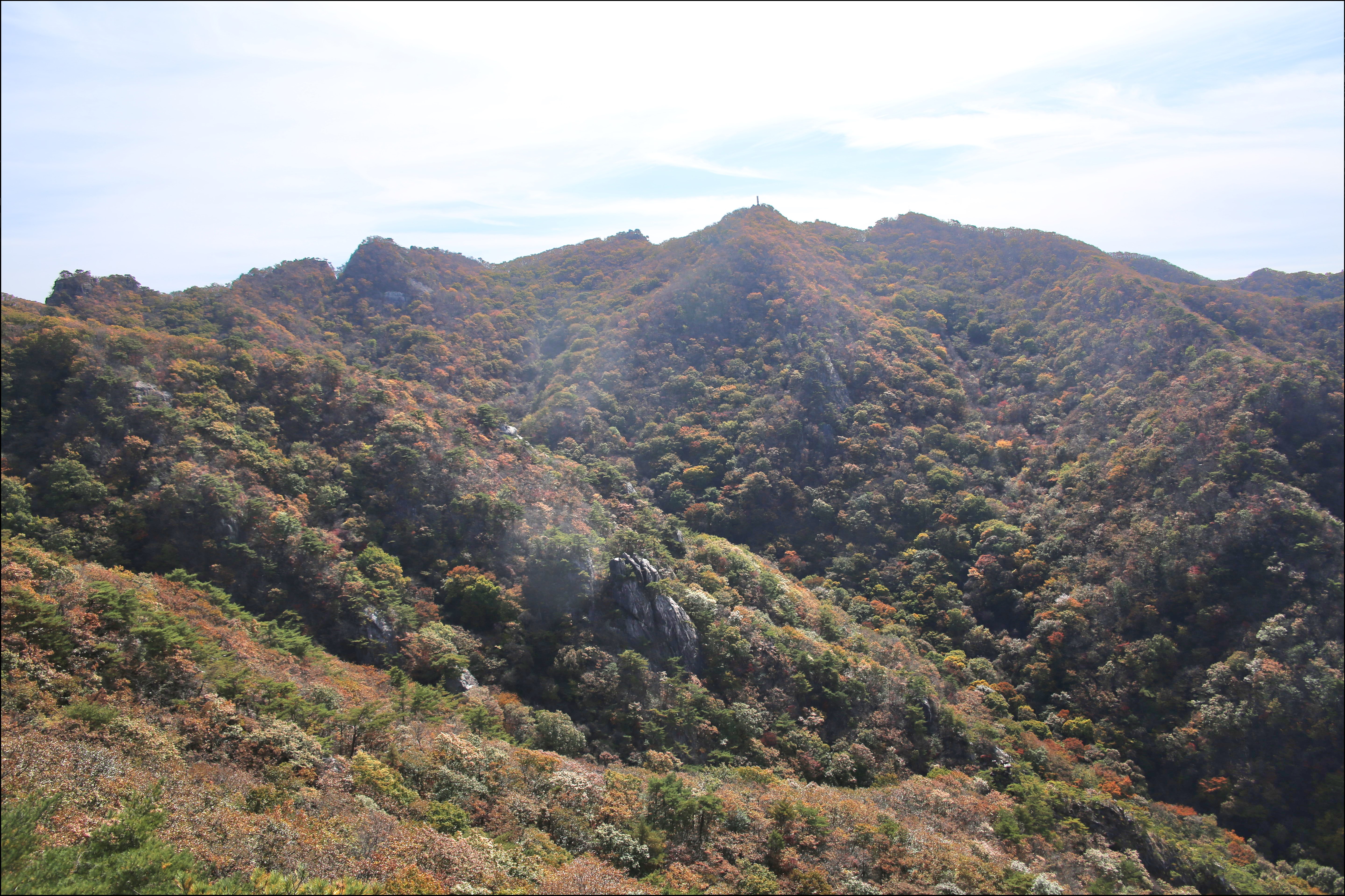 ▼칠성봉 1에서 지나온 암릉(좌) 방향을 배경으로..