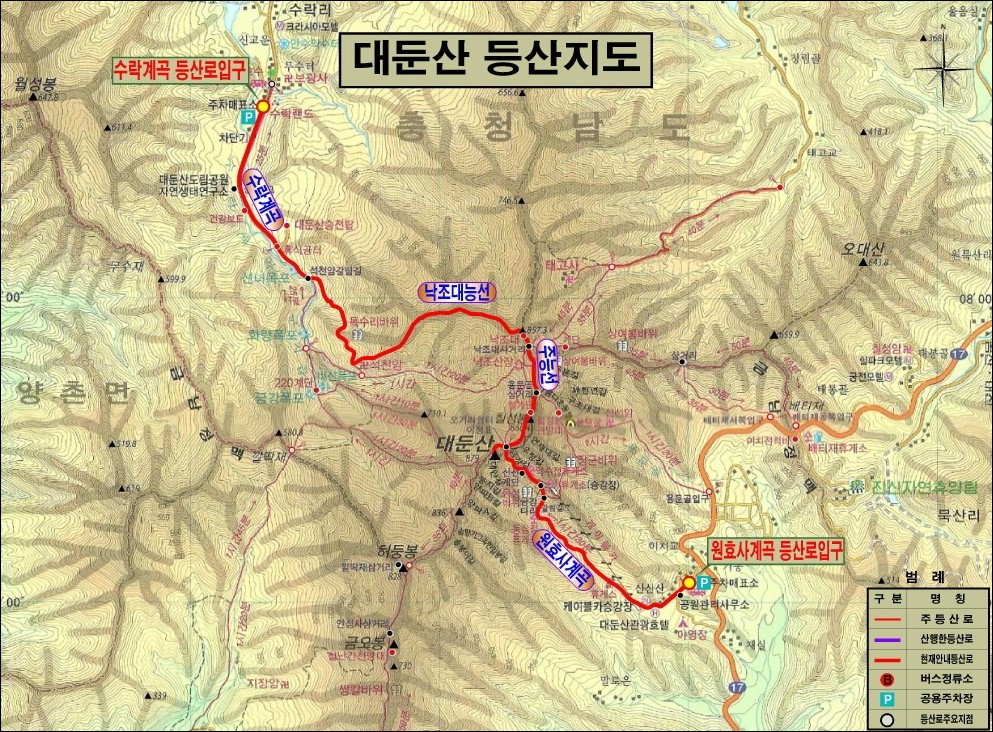 마천대》금강구름다리》케이블카탑승장》대둔산 도립공원 주차장