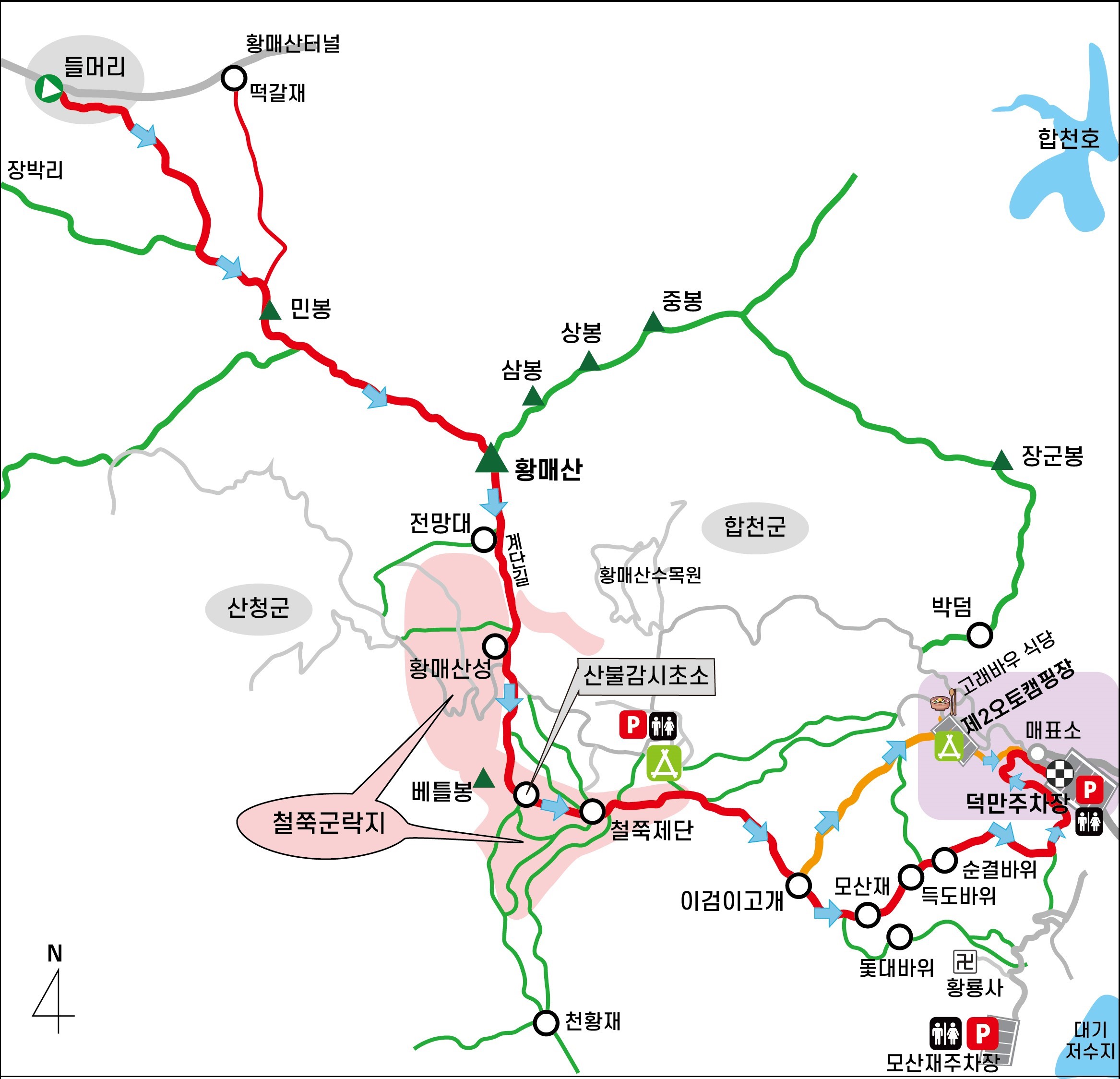 ■ 황매산 매표소》정상주차장》황매산 수목원》별빛언덕》황매평전 억새군락지》철쭉군락지